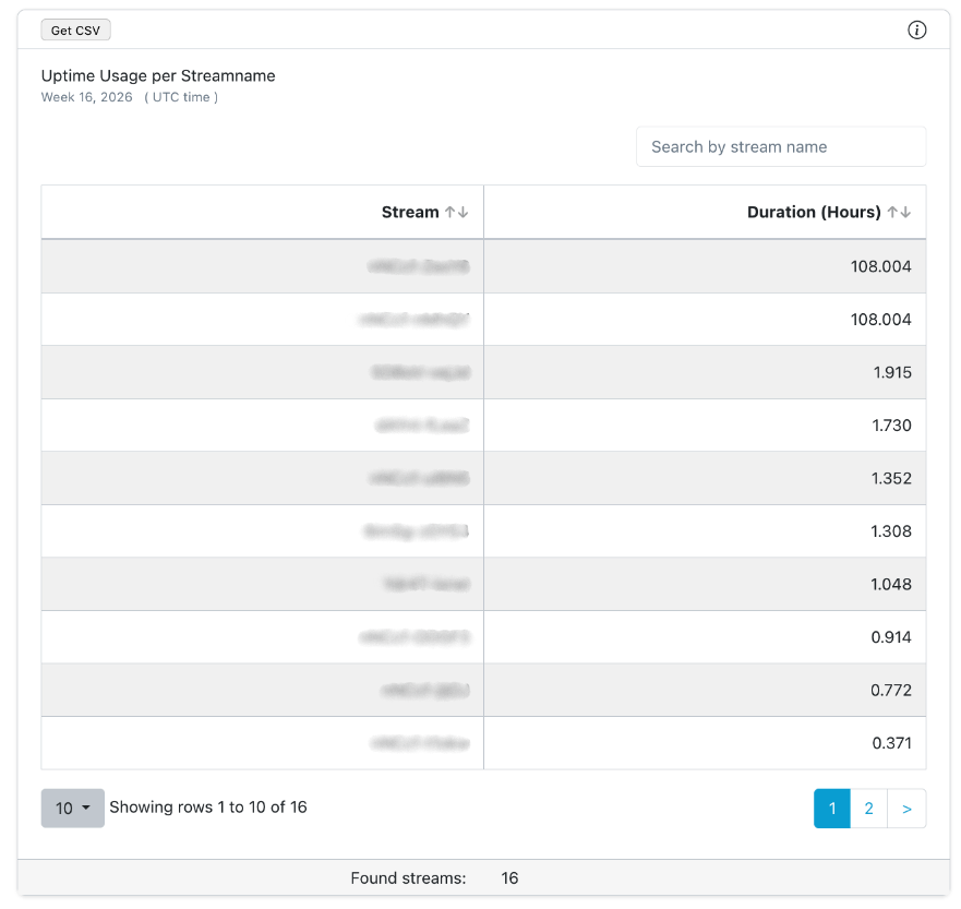 Screenshot: Uptime Usage by Stream